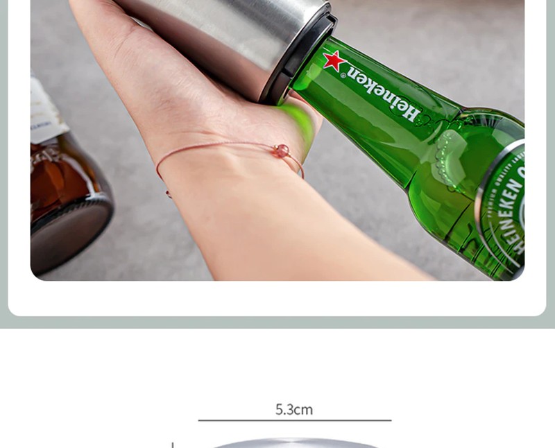 2. Basta posizionare questo apri bottiglia automatico sul tappo della bottiglia, premere verso il basso fino alla fine, E poi saltar fuori. Il tappo può essere facilmente rimosso dalla bottiglia anche con una sola mano! Perfetto per rimuovere il tappo di birra, soda e bottiglia di vetro.