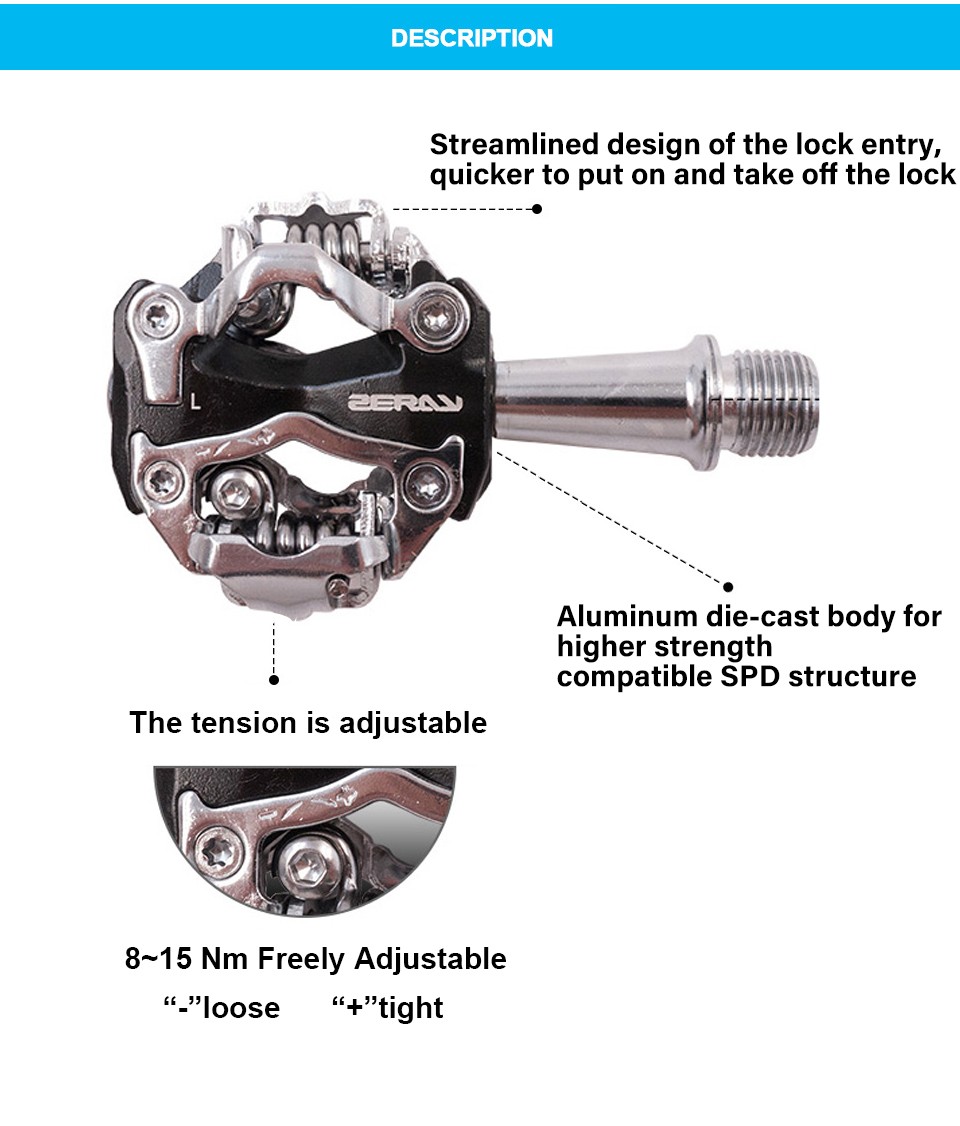 ZERAY MTB Pedali con Tacchetto ZP-108S Compatibile con SPD Structre Alluminio Doubleside Multifunzione Mountain Accessori Per Biciclette