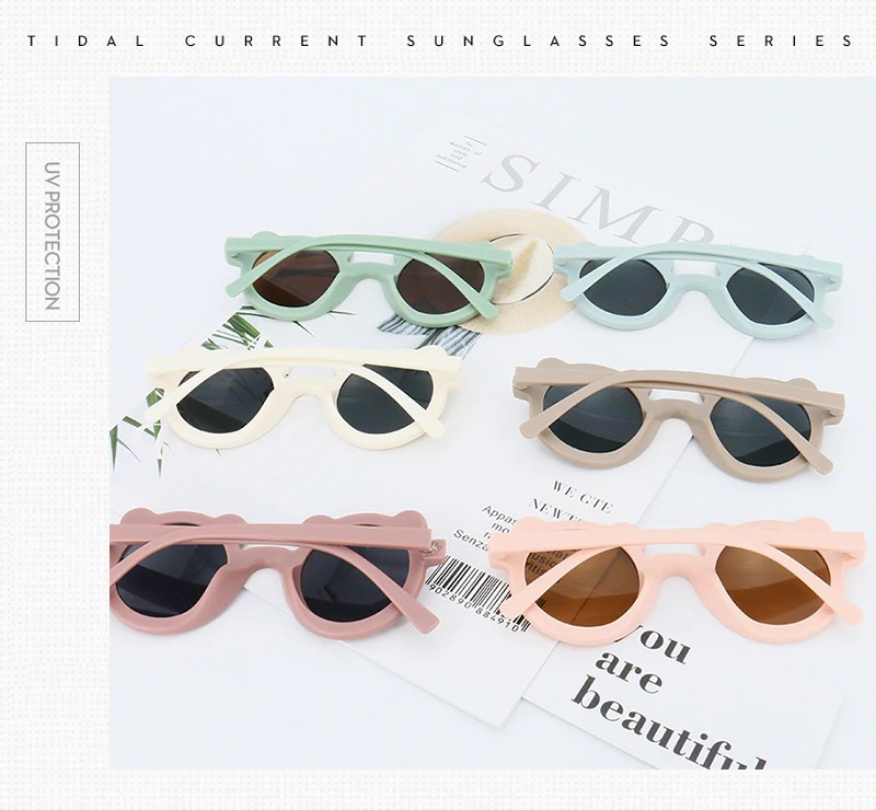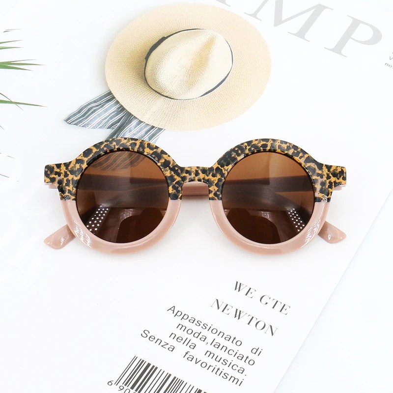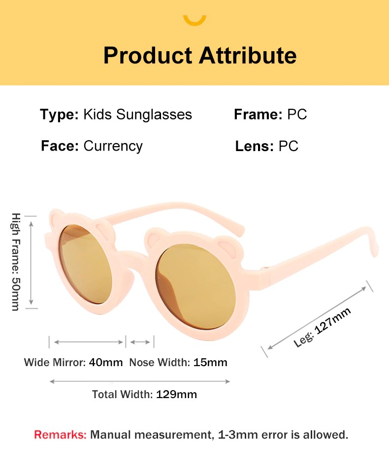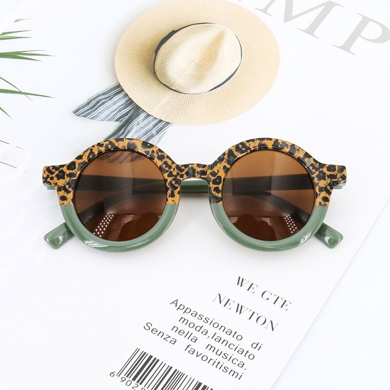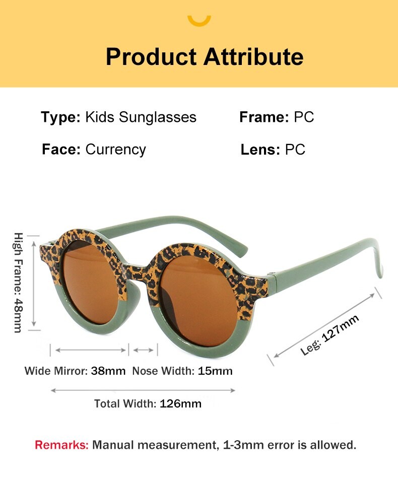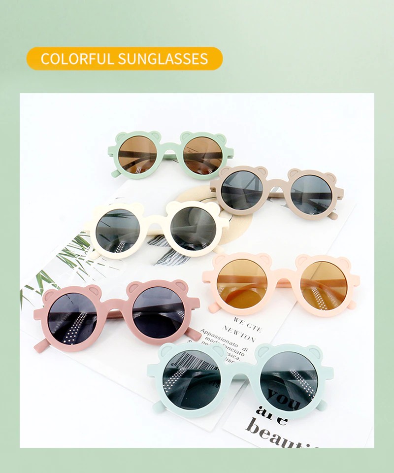 Children Boy Girl Cute Leopard Double Color Cartoon Bear Shape Round Sunglasses Kids Vintage Glasses Uv400 Protection Classic