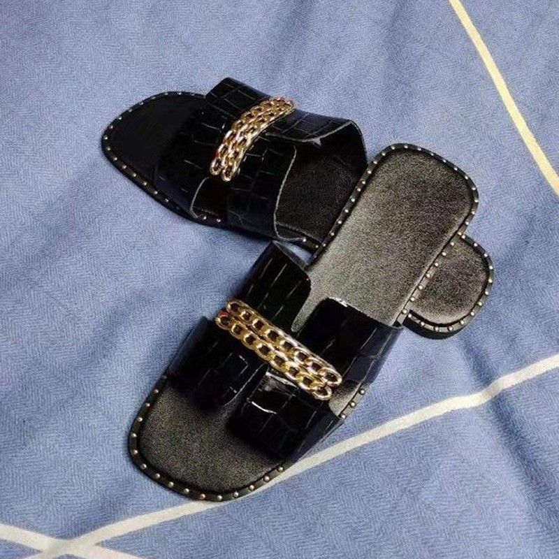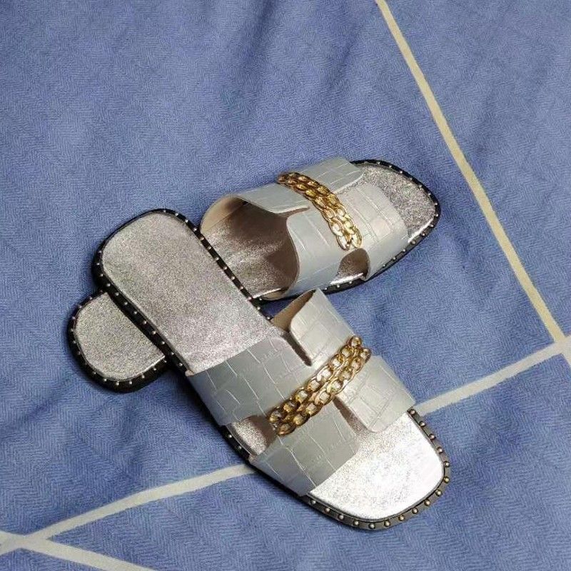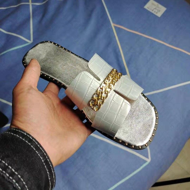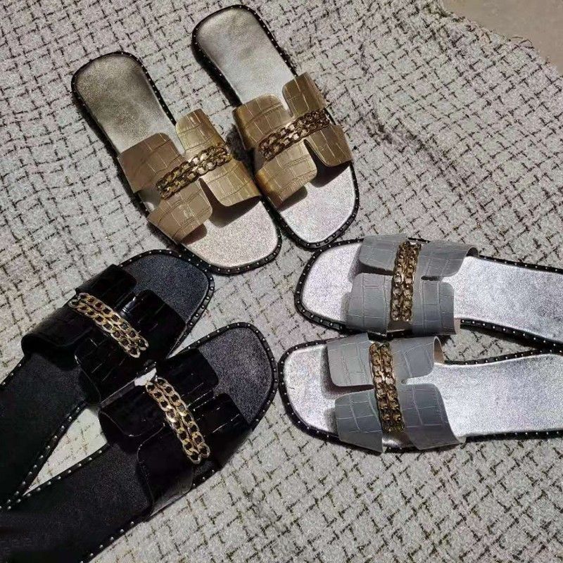 Designer Classico Nuovo Più nuovo Infradito Piatto Da Donna Sandali A Doppia Catena Pantofole Scarpe Donna Lady Appartamenti Pantofole Sandali Scarpe Donna