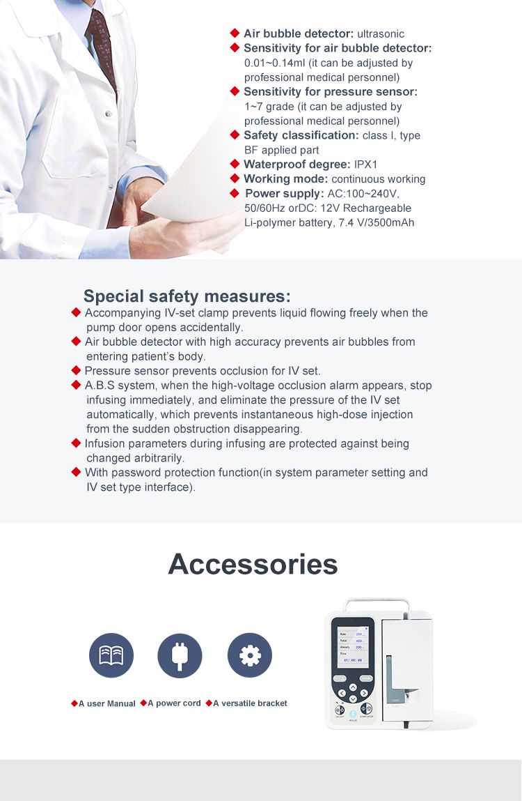 Il prodotto è un volumetrico pompa di infusione, caratteristiche di alta sicurezza, facile da