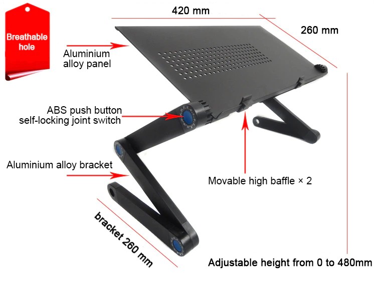Prodotto: (1) scrivania per laptop [foro traspirante, dissipazione del calore]