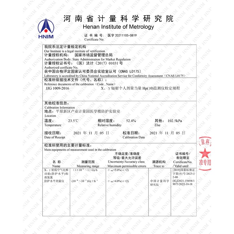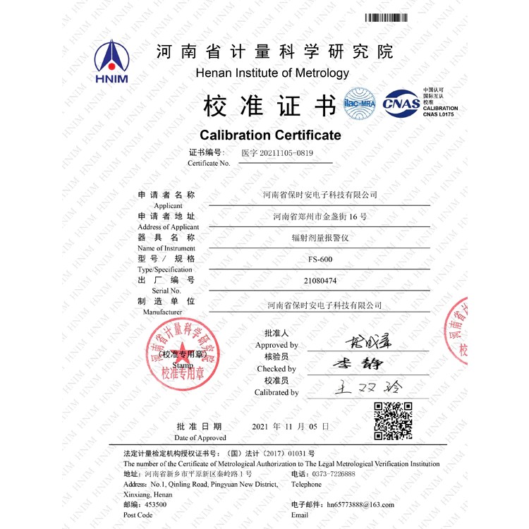 Anche il formato del prodotto è stato progettato in base alla standard di controllo (JJG 1009-2016), E il prodotto ha ottenuto il certificato di taratura del Istituto di Metrologia (20211105-0891)