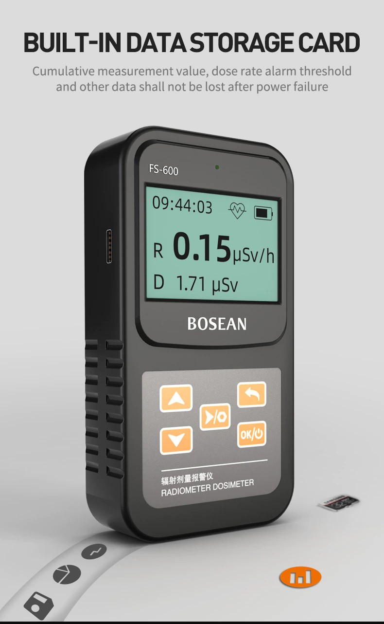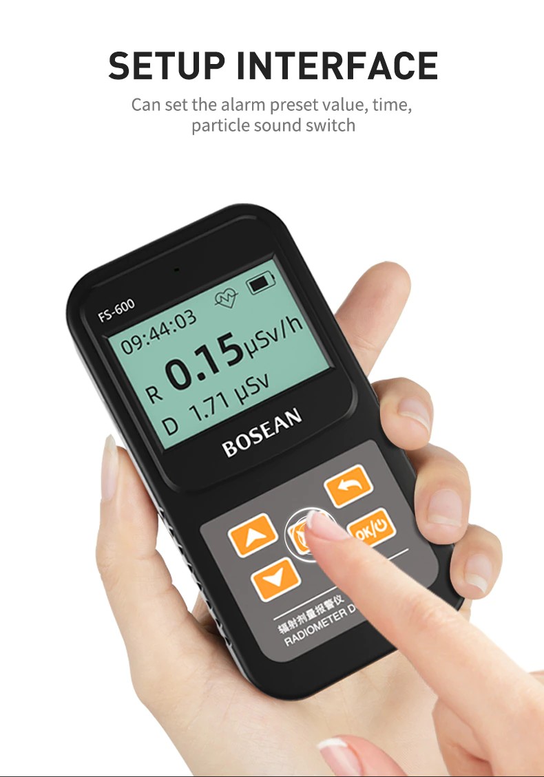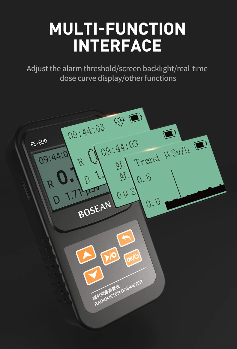 FS-600 è un piccolo ad alta gamma rivelatore di radiazione, la funzione principale è quello di monitorare X-ray, Γ-ray e β-ray.The rivelatore di questo strumento è un-compensato contatore Geiger (di seguito denominato come GM tubo), Che è caratterizzata da una misurazione accurata e di alta gamma. Questo prodotto utilizza un 32-bit microprocessore ed è dotato di un 64*128 a matrice di punti display LCD, che è semplice da usare e ha una forte capacità di anti-interferenza. L'apparecchiatura fornisce un segnale acustico di allarme, e la soglia di allarme è regolabile in continuo. Quando la soglia di allarme è raggiunto, un allarme viene emesso per ricordare il personale di prestare attenzione alla sicurezza. Il principale di conteggio indicatori dello strumento è conforme con gli standard internazionali.