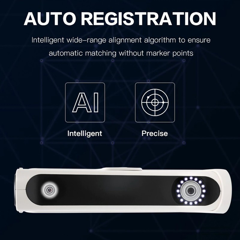 Molteplici Modalità di Scansione:Scansione palmare, è più flessibile, supporta la scansione di oggetti di diverse dimensioni senza marcatura punti. Con giradischi e treppiede, un click scansione automatica, supporto di più pose allineati automaticamente per ottenere una più completa il modello.
