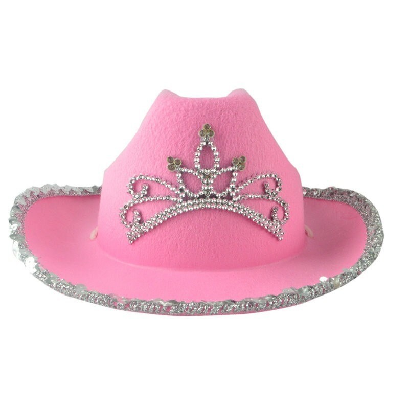 Cappellini Da Cowboy Rosa Corona Cappello Da Cowgirl Occidentale Per Donna Ragazza Bordo Piuma/Paillettes Lucide Tiara Cappelli Da Cowgirl Cappellini Fedora
