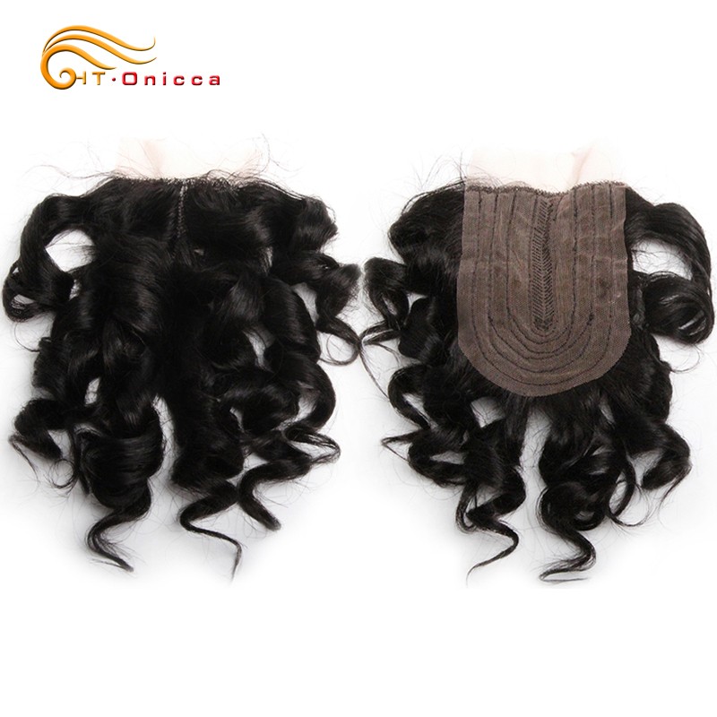 Fasci Di Capelli Ricci Con Chiusura T Parte 4X 1 Chiusura In Pizzo Fasci Ricci Di Capelli Brasiliani Corti Con Chiusura Colore Naturale
