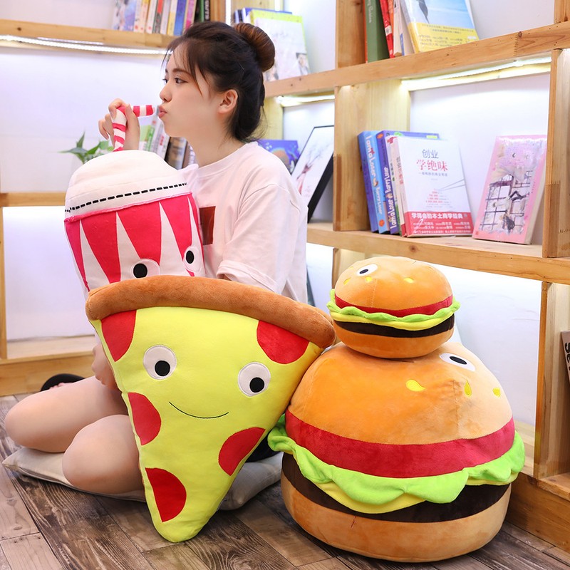 Simpatico Cartone Animato Peluche Hamburger Gelato Patatine Fritte Giocattolo Farcito Cibo Popcorn Torta Pizza Cuscino Cuscino Giocattoli Per Bambini Regalo Di Compleanno