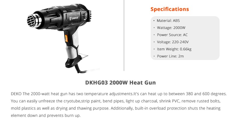 Deko Nuovo Dkhg03 220V 2000W Temperature Avanzate Della Pistola Ad Aria Calda Regolabili Con Pistola Termica Elettrica A Quattro Ugelli