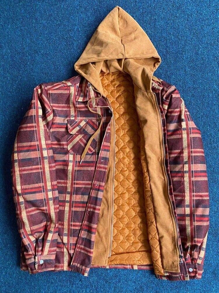 Abbigliamento Uomo Esplosivo Modelli Europa americani Autunnali E Invernali Giacca Con Cappuccio Sciolto A Maniche Lunghe Scozzese In Cotone Spesso