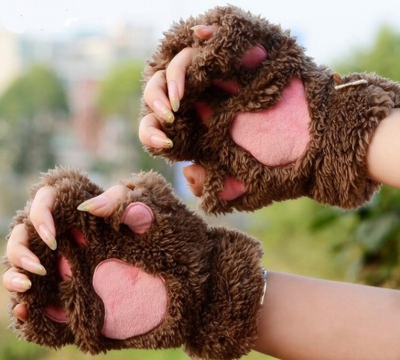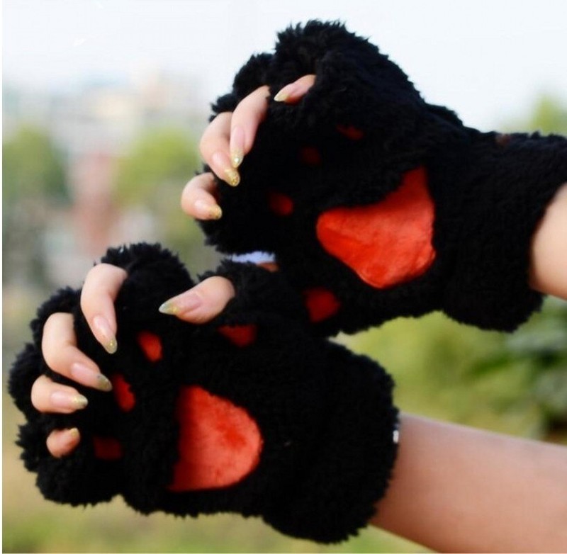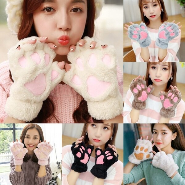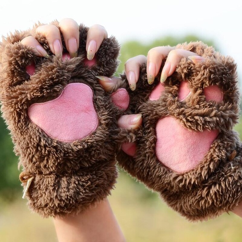 Fashion Girls Lovely Cat Claw Paw Guanti Di Peluche Warm Soft Plush Short Fingerless Women Leisure Bear Cat Guanti Mezze Dita Regali