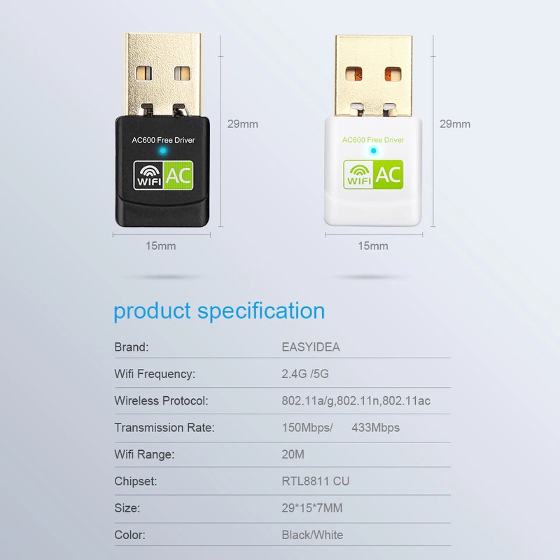 Driver Gratuito Adattatore Wifi Usb Adattatore Wi-Fi 600Mbps Antenna 5Ghz Usb Ethernet Pc Adattatore Wi-Fi Lan Wifi Dongle Ricevitore Wifi Ac
