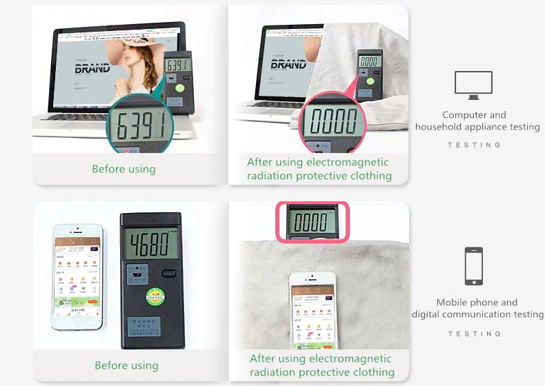 Il secondo passo: utilizzare resistenti alle radiazioni radiazioni vestiti per bloccare la parte posteriore del telaio, nel mezzo della radiazione attrezzature e la parte posteriore del computer host per bloccare uno strato di radiazioni tute di protezione, poi vedere il display dello strumento è il valore di 0, che indica che il computer host di radiazione elettromagnetica è irradiata Abbigliamento schermato.
