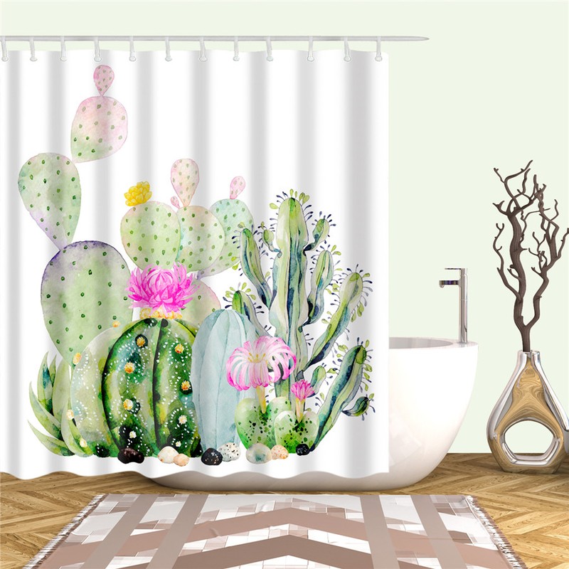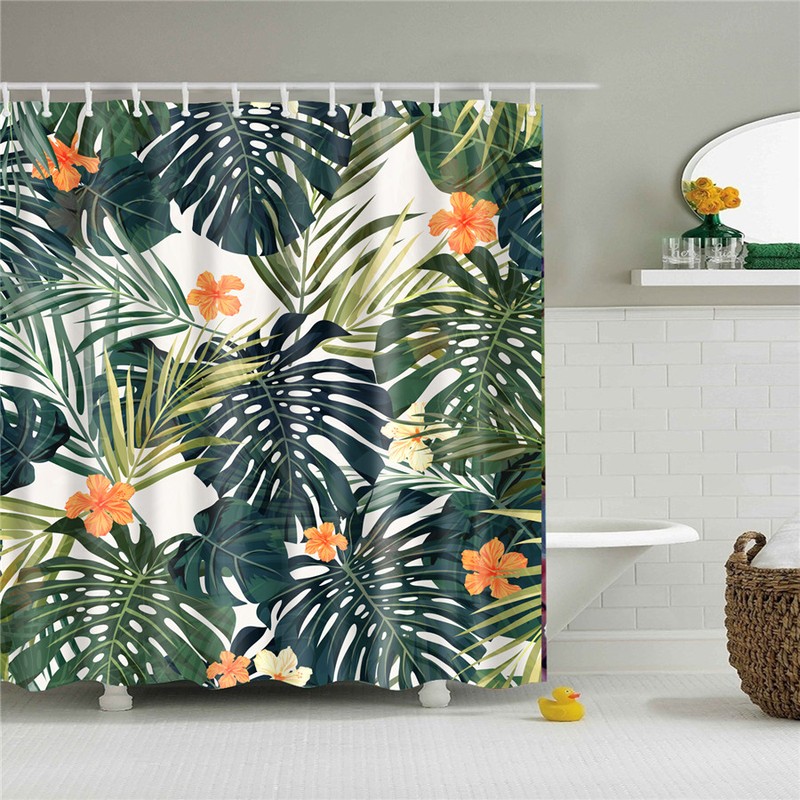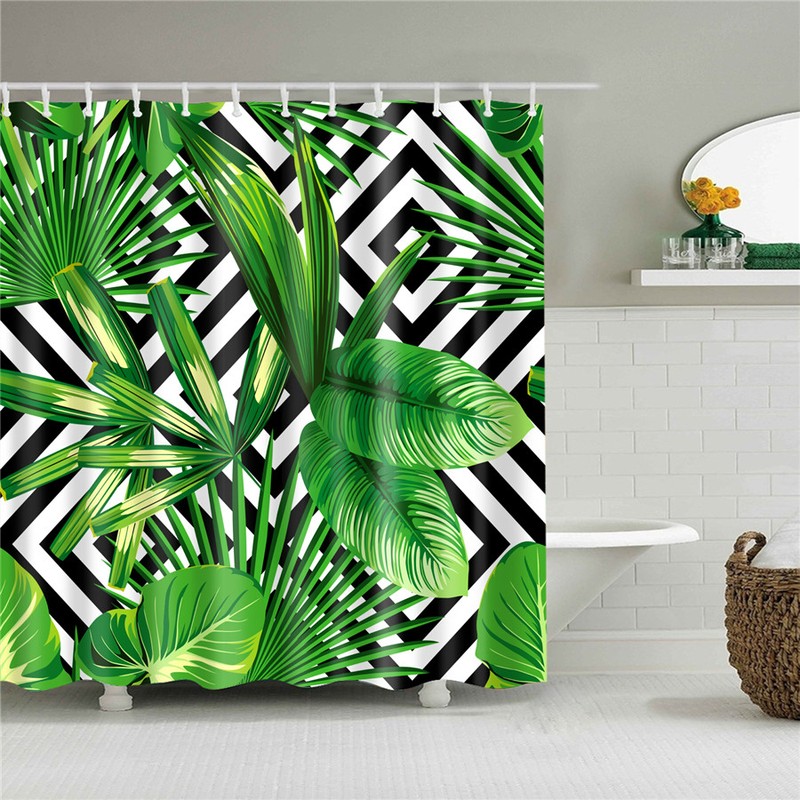 Tenda Da Doccia Tropicale Verde Foglia Di Palma Cactus Tenda Da Bagno Tenda Da Bagno In Poliestere Impermeabile Con Ganci