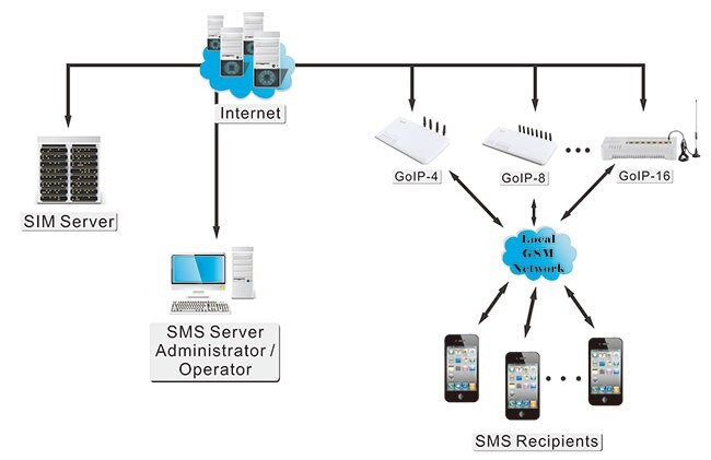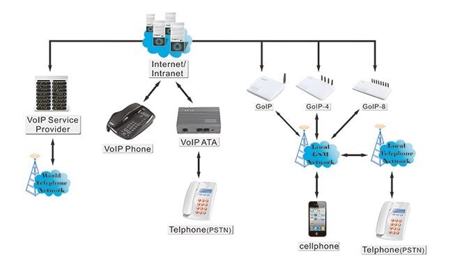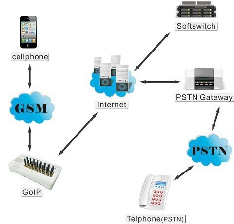 Il GoIP-16 consente diretta di routing tra IP e la rete GSM, senza l' uso di un FXO