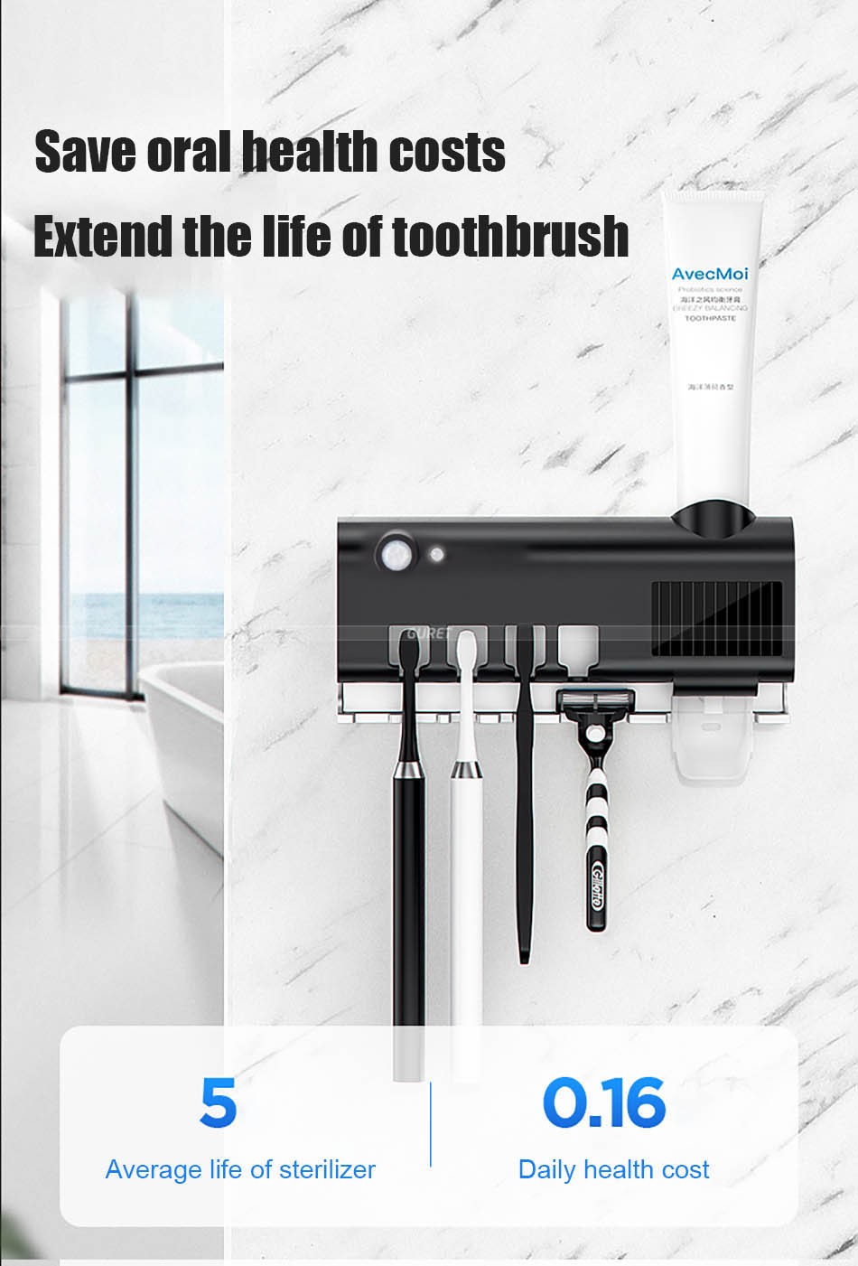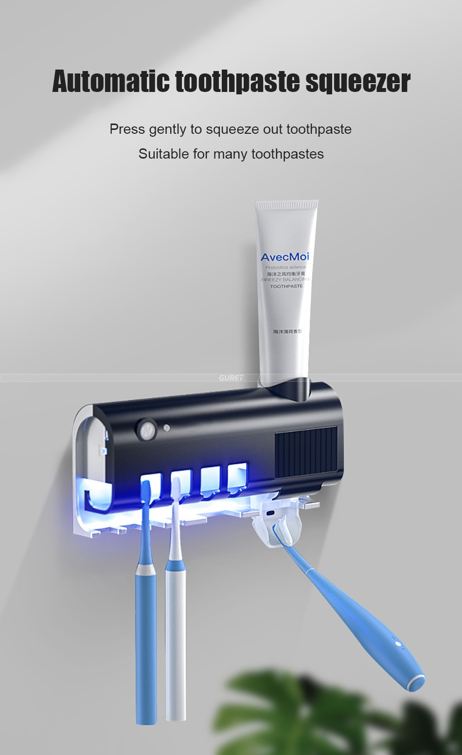 Guret Portaspazzolino Uv A Energia Solare Sterilizzatore Per Spazzolino Da Parete Dispenser Automatico Di Dentifricio Spremiagrumi Accessori Per Il Bagno