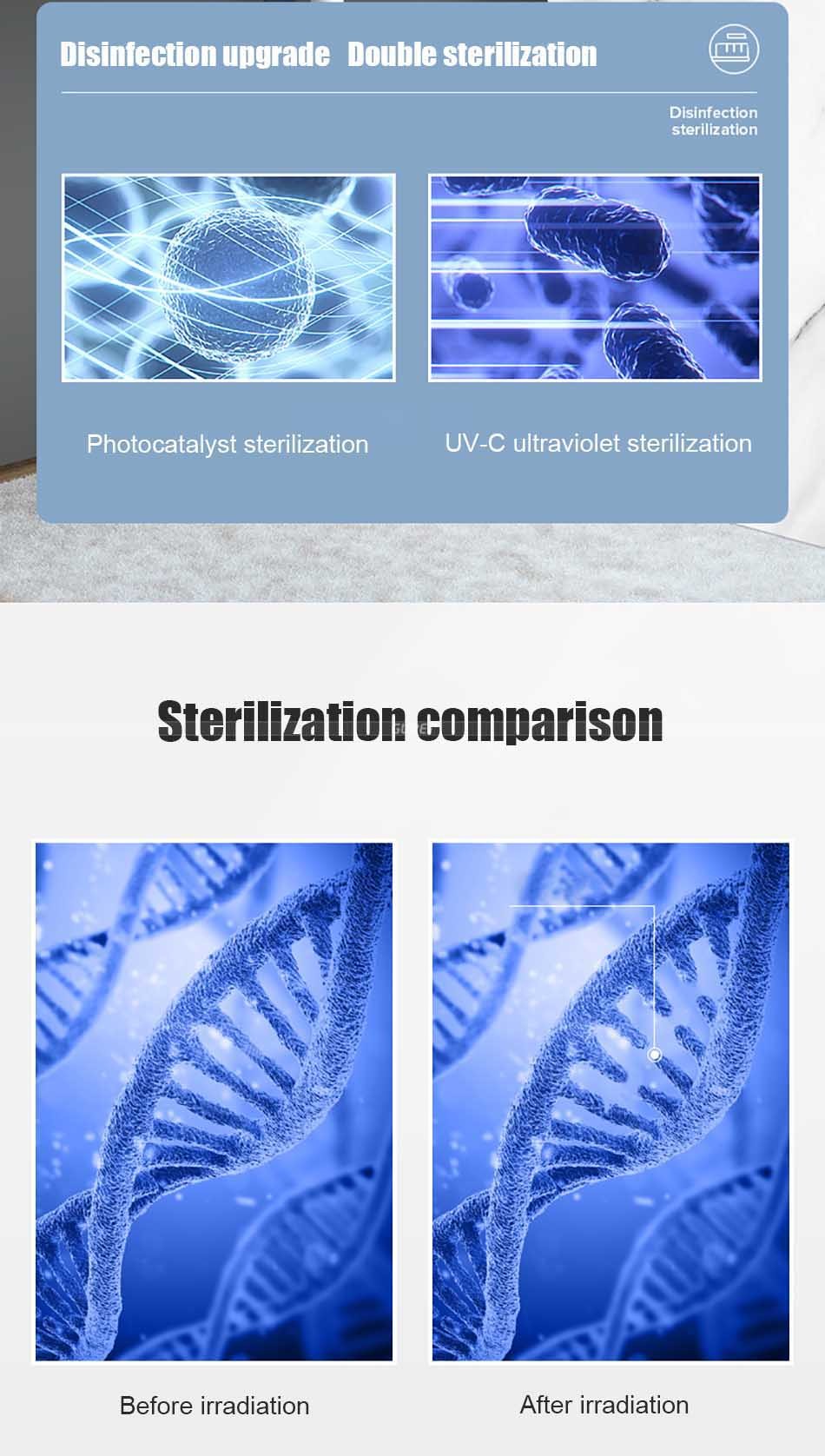 3. A raggi infrarossi disinfezione induzione, quando le persone sono vicino a 1.5 metri, la funzione di sterilizzazione si spegne automaticamente