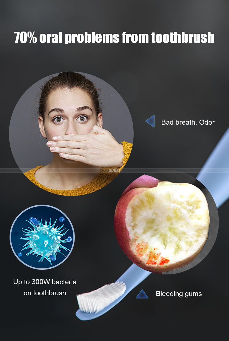 1. Spazzolino da denti sterilizzatore uv, fotocatalizzatore + di sterilizzazione a raggi ultravioletti, tasso di sterilizzazione è alto come il 99.9%, spazzolino da denti di disinfezione è più approfondita