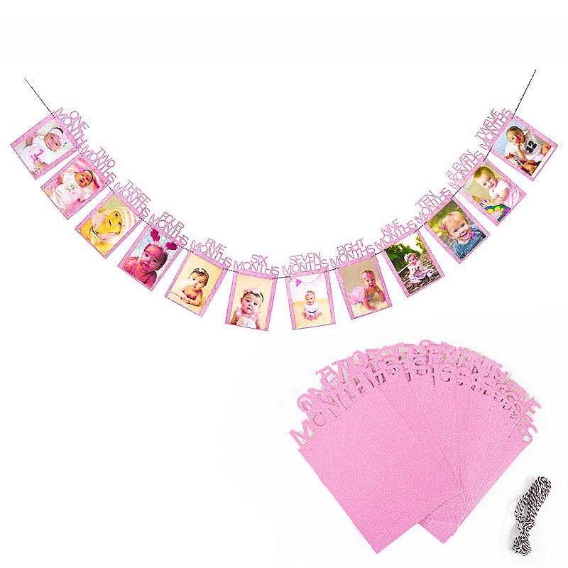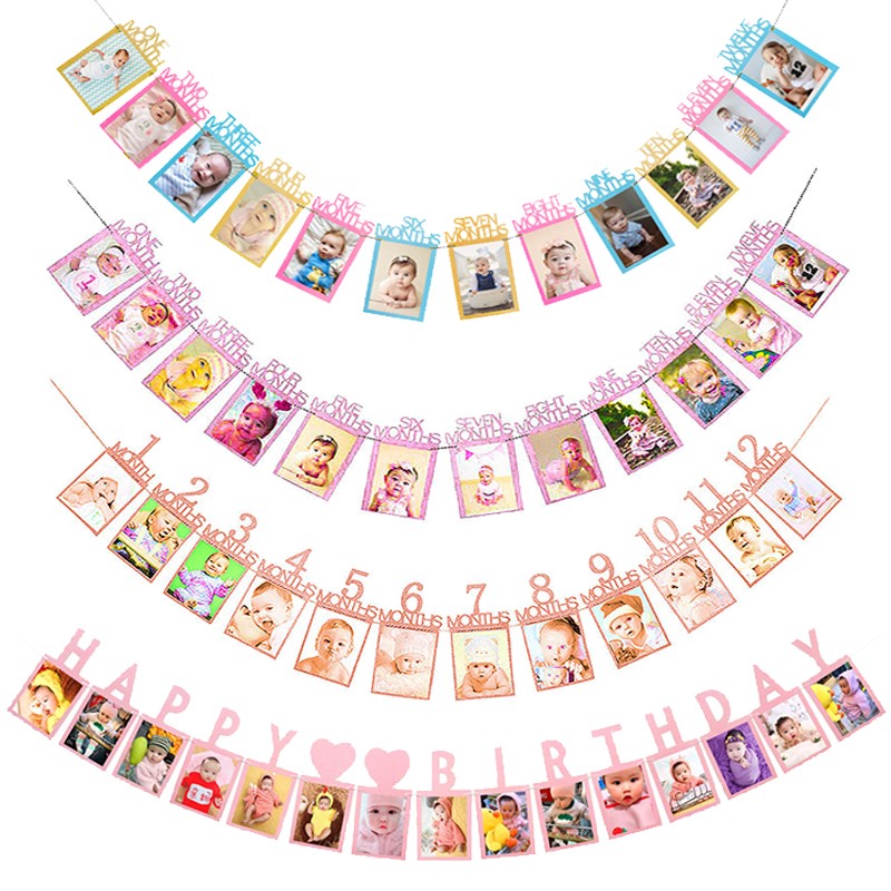 Banner Per Cornice Per Foto Di Buon Compleanno La Prima Festa Di Famiglia Decorazione Per Bambini Baby Boy Girl My 1St One Year 12 Mesi Ghirlanda Neonato