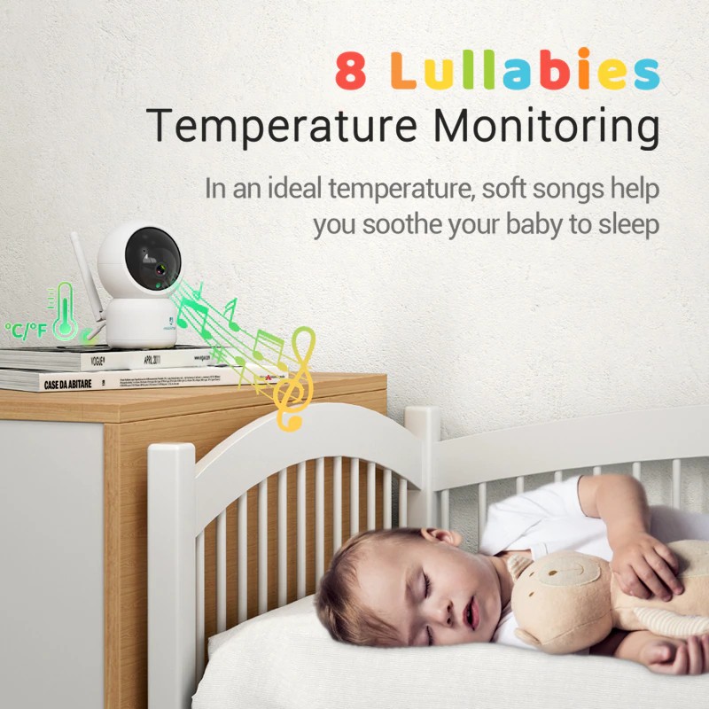 【Give La Pace della Mente Protection】HeimVision audio baby monitor dispone di monitoraggio della temperatura, allarme di rilevamento del suono, trovare il vostro bisogno del bambino a prima volta. A due vie parlare, 8 morbido ninne nanne, alimentazione funzione di promemoria, assicurare il comfort il vostro bambino in vari modi.