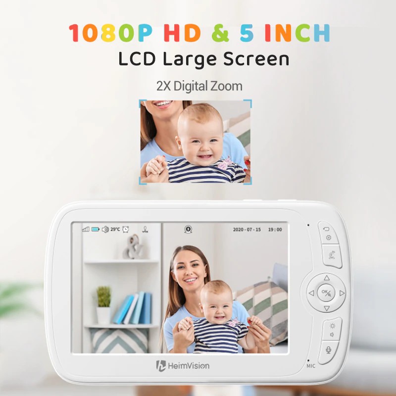 【Ultra Immagine Chiara e Grande Schermo Display】Adottato con 5 "schermo LCD con una risoluzione di 1080P macchina fotografica, heimVision schermo video baby monitor hanno una maggiore risoluzione e biger rispetto alle precedenti baby monitor, sono in grado di rendere le immagini display in modo vivid come si sono nel presente.