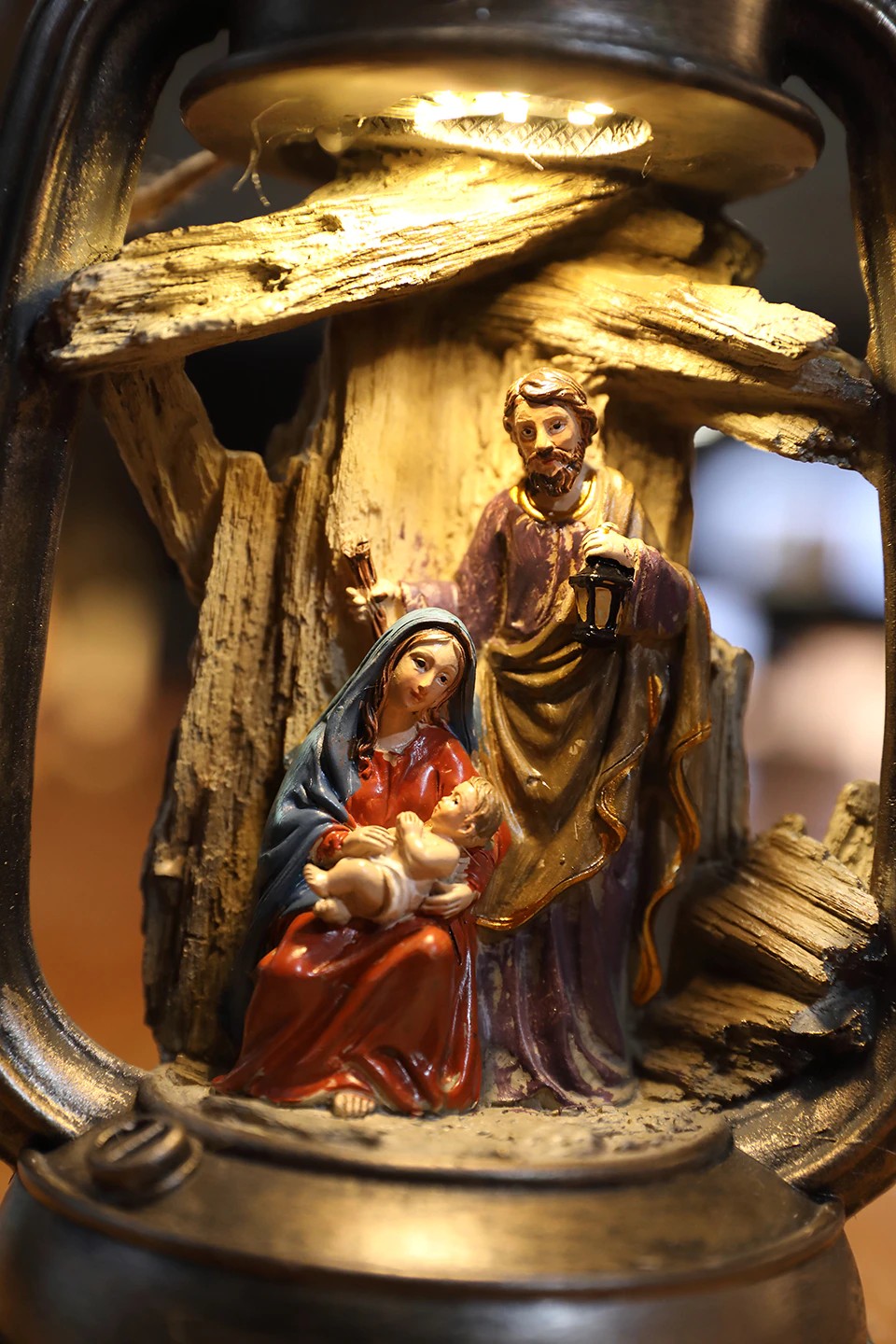 Decorazioni Per La Casa Set Di Presepe Gesù Figurine Cristo Scene Di Nascita Statua Della Santa Famiglia Decorazioni Per Alberi Di Natale Regalo Cattolico A Led
