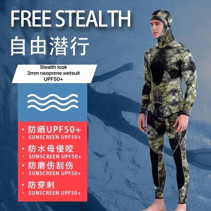 Hot 3Mm Muta Mimetica Manica Lunga Fissione Con Cappuccio 2 Pezzi Di Neoprene Sommergibile Per Uomo Mantenere Caldo Muta Da Sub Impermeabile