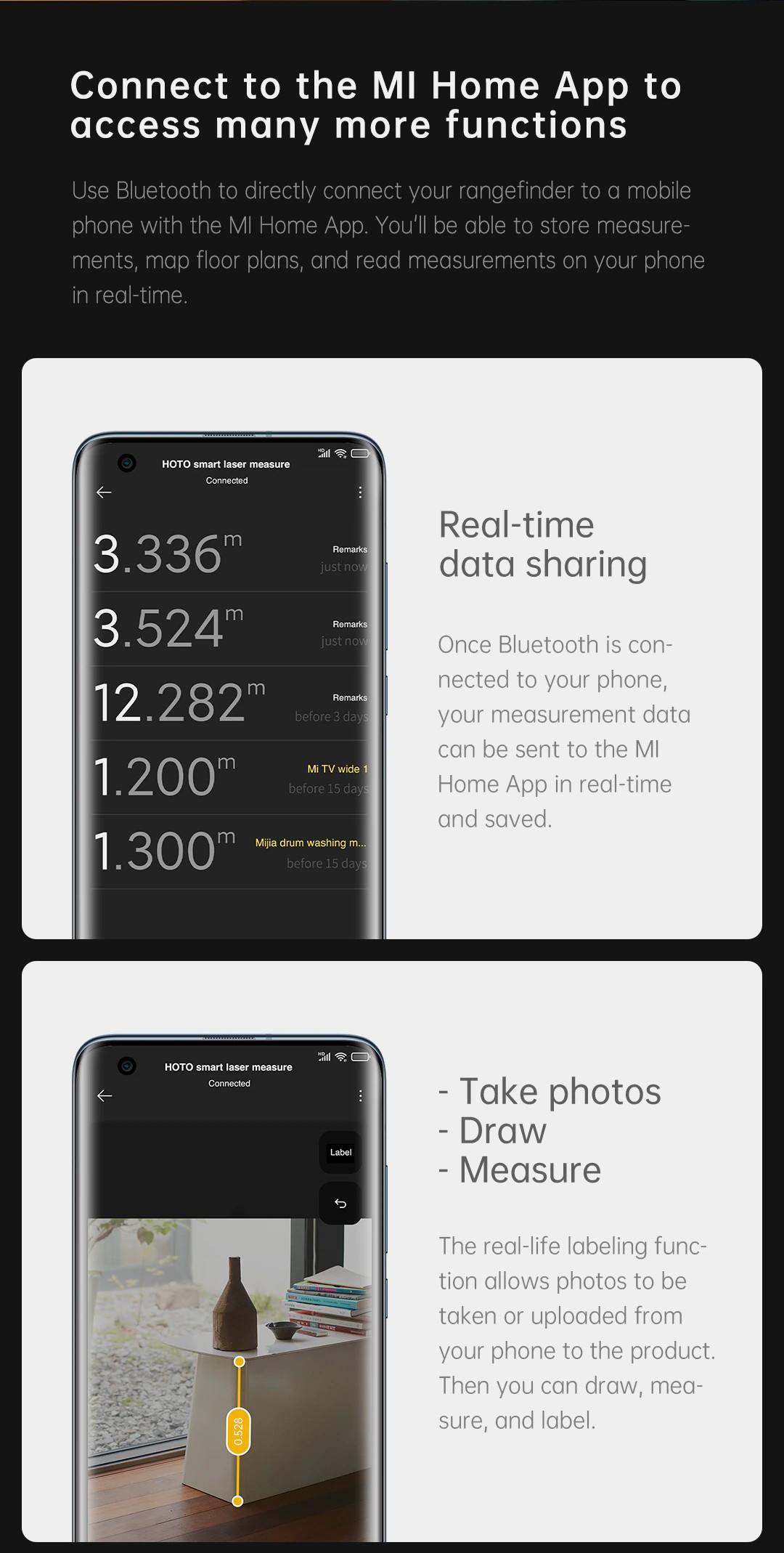 Il telemetro laser viene collegato con l'applicazione "MI Home"