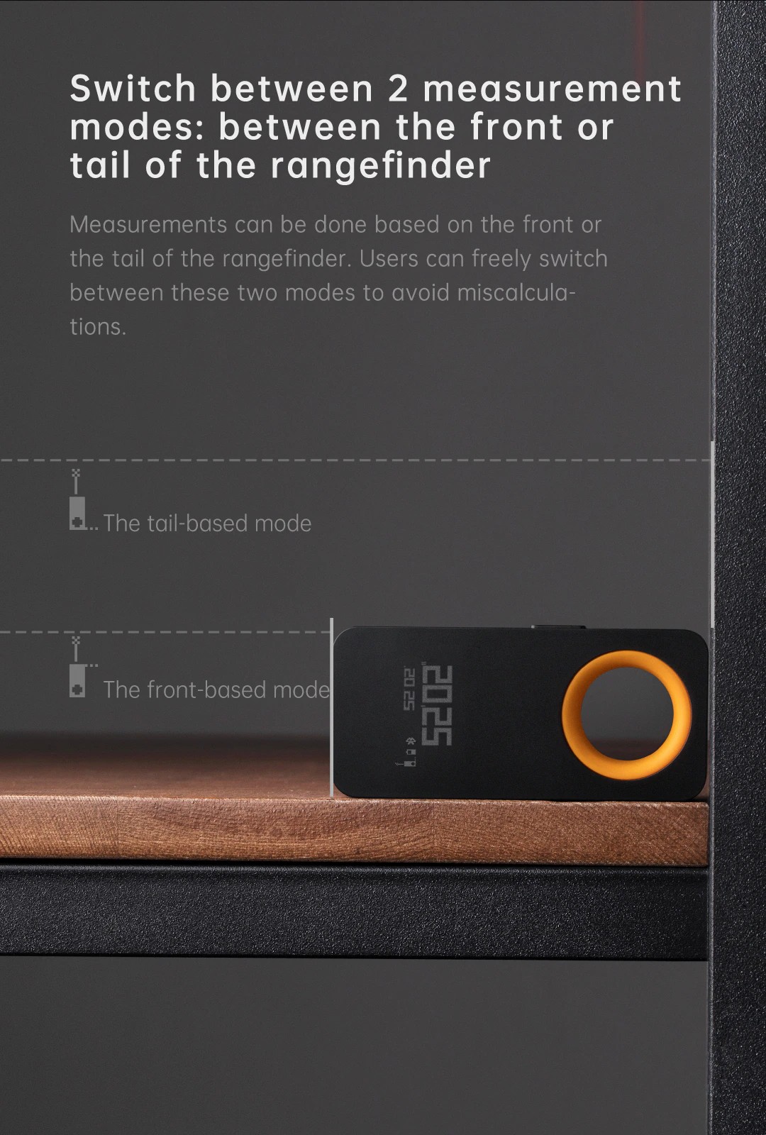 Gomito il telemetro laser supporta solo metri e piedi come unità, non centimetri, millimetri e pollici.
