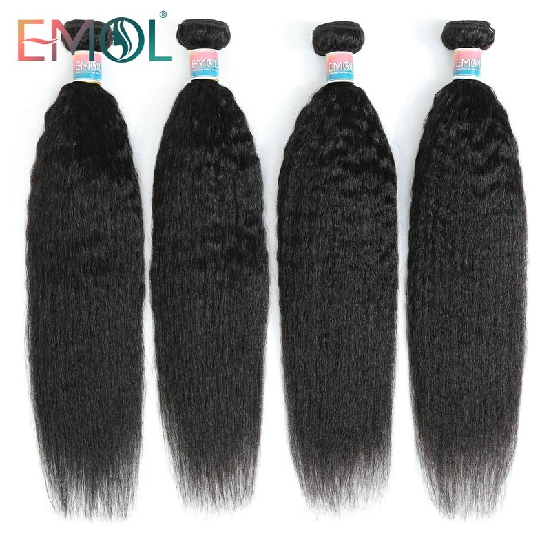 Fasci Di Capelli Lisci Crespi 100% Estensioni Dei Capelli Umani Fornitore All'Ingrosso Yaki Lisci 3/4 Fasci Tessuto Naturale Dei Capelli Emol