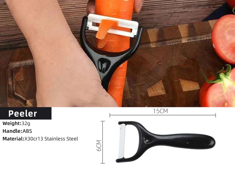 Il pacchetto include: 4 coltelli da cucina, forbici, peeler
