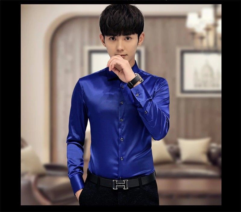 Camicia Da Uomo Stile Coreano Moda Abito Da Sposa Manica Lunga Camicia Vintage Smoking In Seta Camicia Da Uomo In Cotone Chemise Bianca