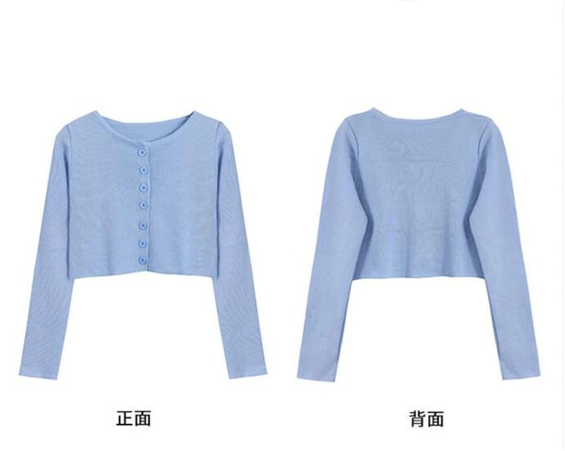 Maglioni Lavorati A Maglia Corti O-Collo Stile Coreano Donna Cardigan Sottile Manica Moda Protezione Solare Crop Top Ropa Mujer