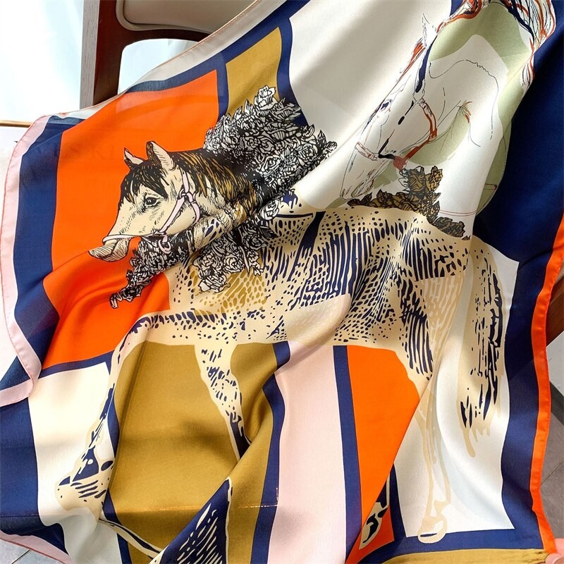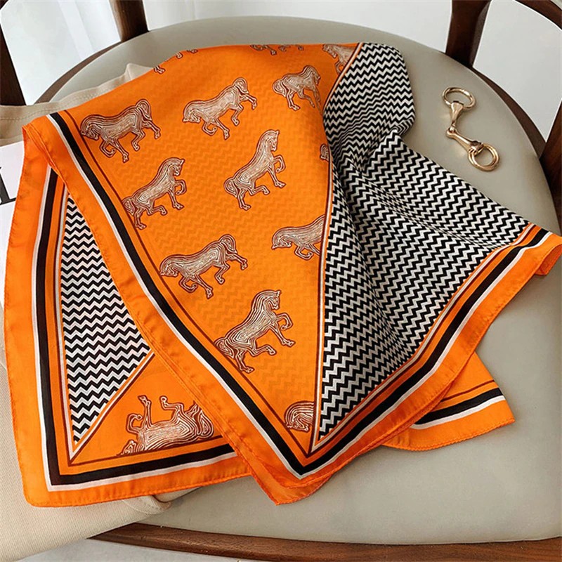 Più recente New 70*70Cm Silk Satin Hair Scarf Women Handkerchief Printed Female Square Head Bandana Small Neck Muffler Hijab Lady Girl