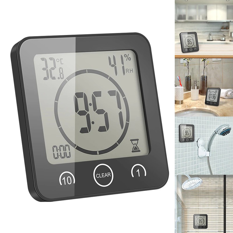 Schermo Lcd Impermeabile Orologio Da Parete Per Bagno Digitale Temperatura Umidità Conto Alla Rovescia Funzione Tempo Lavaggio Doccia Orologi Sospesi Timer