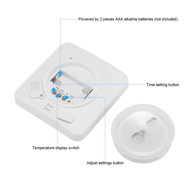 Il totale di conto alla rovescia timer è di 99 minuti. Built-in tre touch tasto di controllo, facilmente impostare il timer. Quando raggiungere il tempo di impostazione, chiaro e ad alta voce di allarme per ricordare o nelle persone. Adatto per tempo doccia, SPA tempo, tempo di riposo, tempo di cottura.