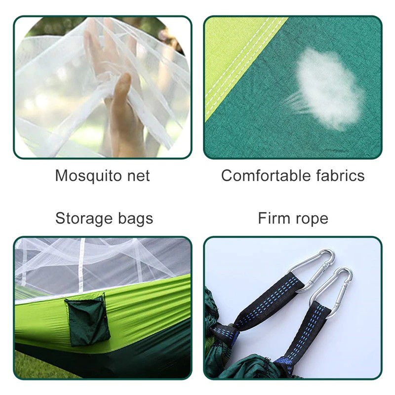 Prima di tutto, ti posso dire con sicurezza che questa amaca da campeggio è composta da tre membri principali: un'amaca, una zanzariera e un ombrellone. Quando la notte cade, puoi appendere la zanzariera a terra in modo da evitare le punture di zanzara. Quando arriva una forte luce solare, puoi impostare il cielo per evitare forti radiazioni ultraviolette. Quando arriva l'impermeabile pioggia pesante, puoi impostare rapidamente il cielo, così puoi evitare la pioggia, naturalmente, il cielo può anche essere rimosso e poi venire al pad locale!