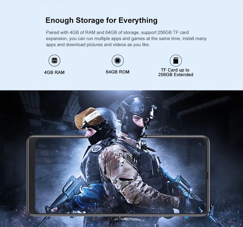 Accoppiato con 4GB di RAM e 64GB di memoria, supporta 256GB di espansione della carta di TF, È possibile eseguire più applicazioni e giochi, allo stesso tempo, installare molte applicazioni e scaricare le immagini e video come ti piace.