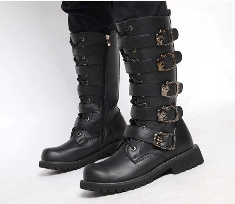Stivali Da Moto In Pelle Da Uomo Stivali Combattimento Militari A Metà Polpaccio Vita gotica Punk Scarpe Da Uomo Stivali Militari Tattici Più nuovo