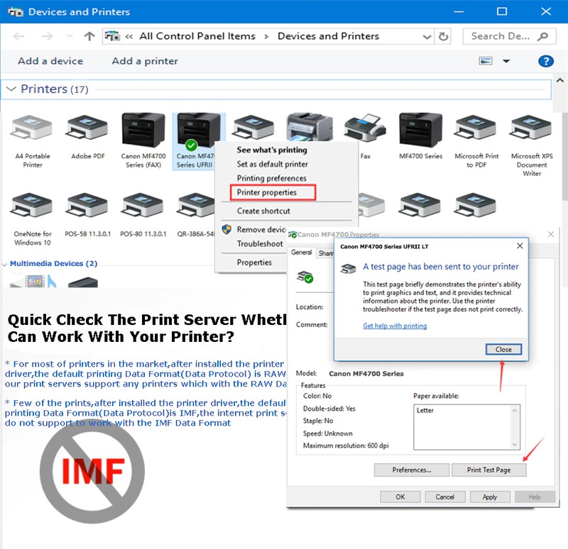 Dispositivo e Stampante di Computer-> Scegliere Canon Stampante MF4700-> Fare Clic Destro-> Proprietà Della Stampante)-> Prova di stampa Pagina-> Ottenere il Formato Dei Dati,Come le immagini qui sotto mostra: