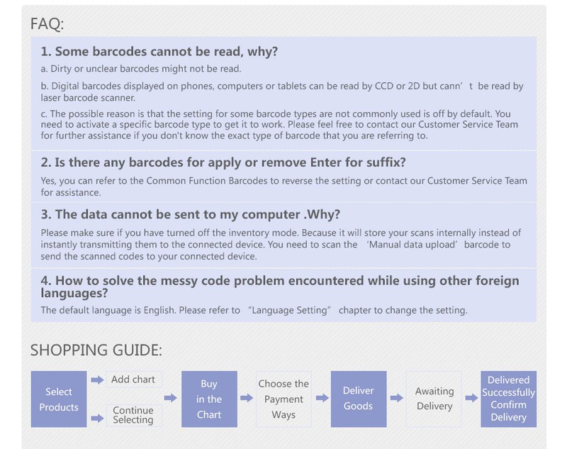1. Alcuni tipi di codici a barre non può essere decodificato da questo 2.4G wireless e bluetooth scanner prima di programmare. In questo caso si prega di contattare noi per ottenere il comando di codici a barre per programmare.