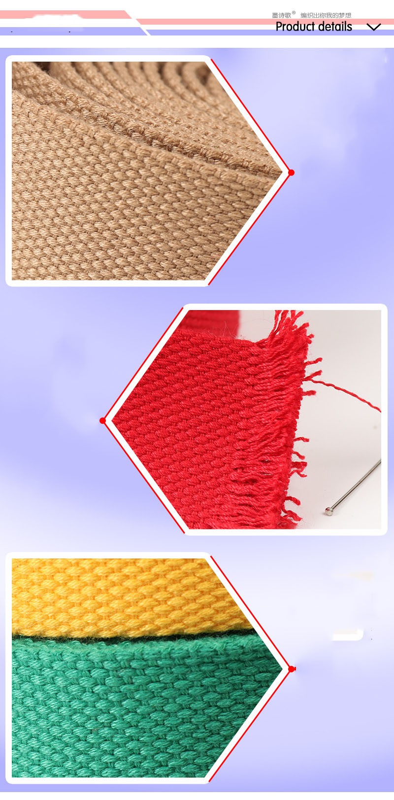 Caratteristica: di Spessore tessuto normale. La trama non è difficile e si sente bene. Adatto per la cintura in vita, tessitura, cinghia di tela di canapa, cinghia dei bagagli