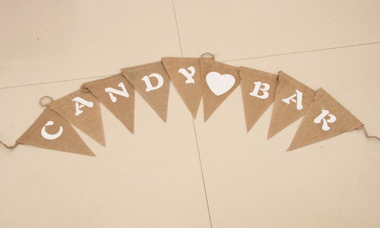 Nuovo Della Tela Di Iuta Tessuto Di Iuta Rustico Tela Bunting Banner Banner Bandiere Candy Bar Dell'Annata Del Partito Decorazione Di Cerimonia Nuziale Aa8040