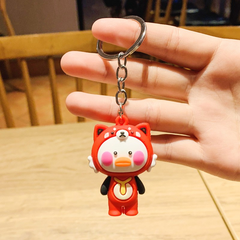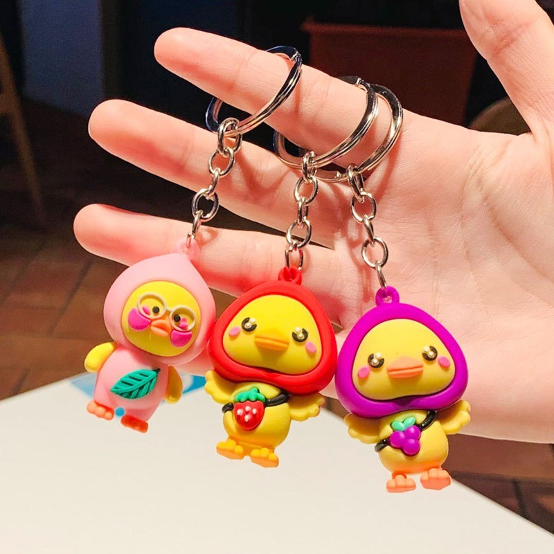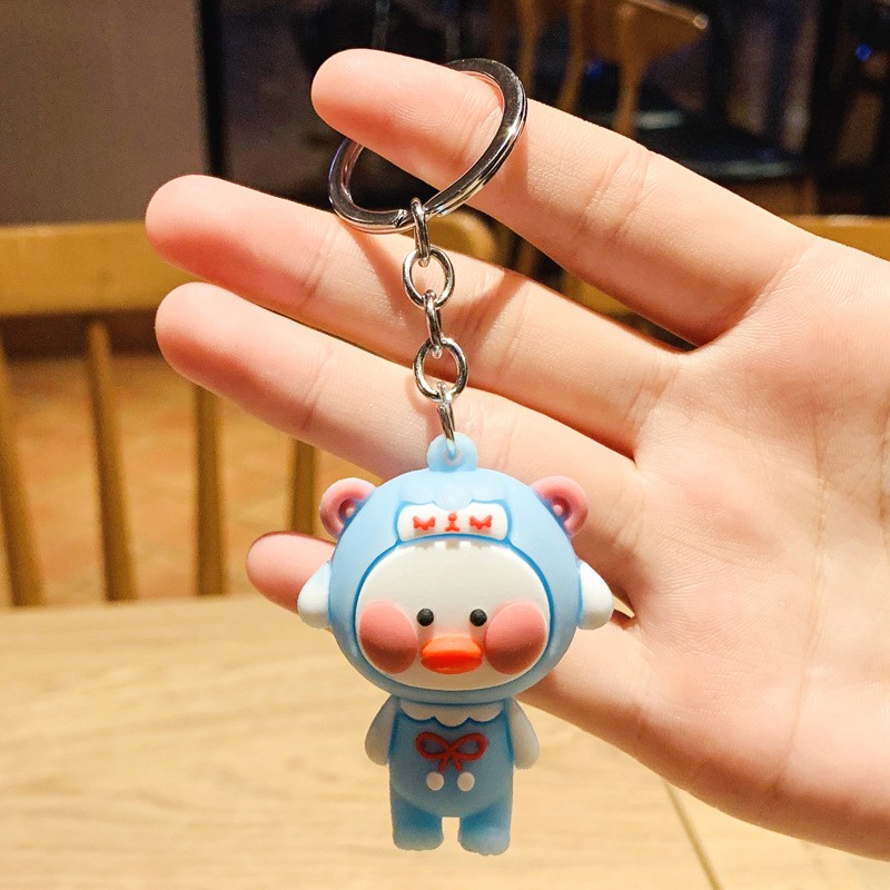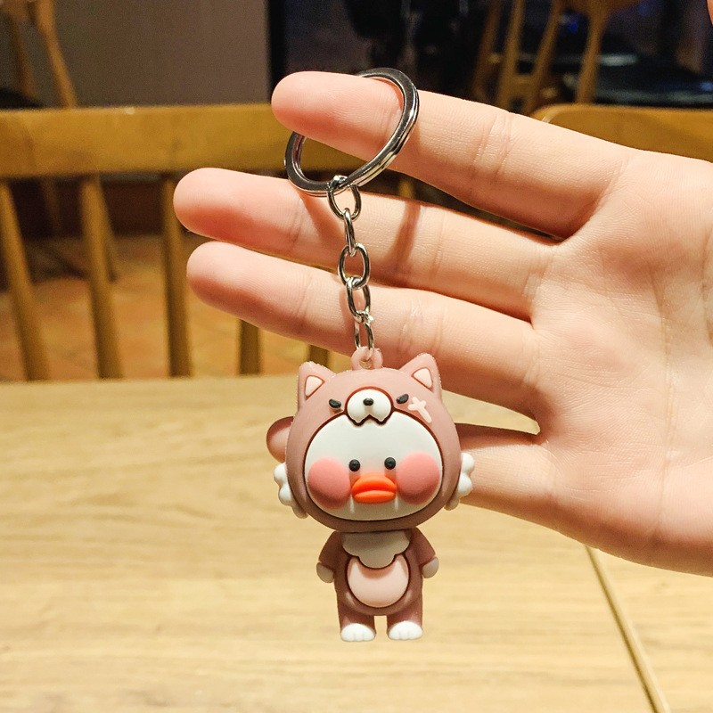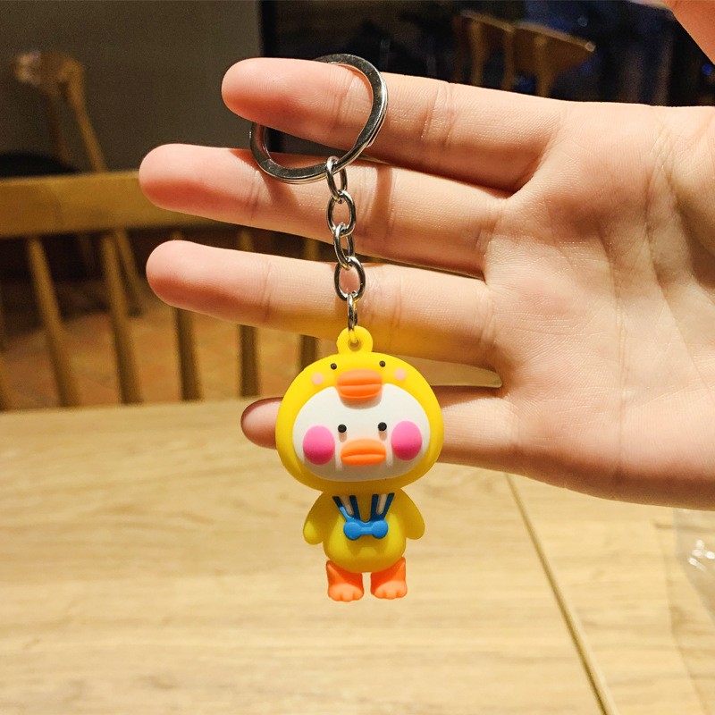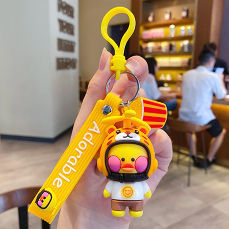 Nuovo Coreano Lalafanfan Anatra Portachiavi Con Casco Animale Piccola Anatra Gialla Figura Portachiavi Decor Carino Anatre Bambola Giocattoli Regali Per Bambini