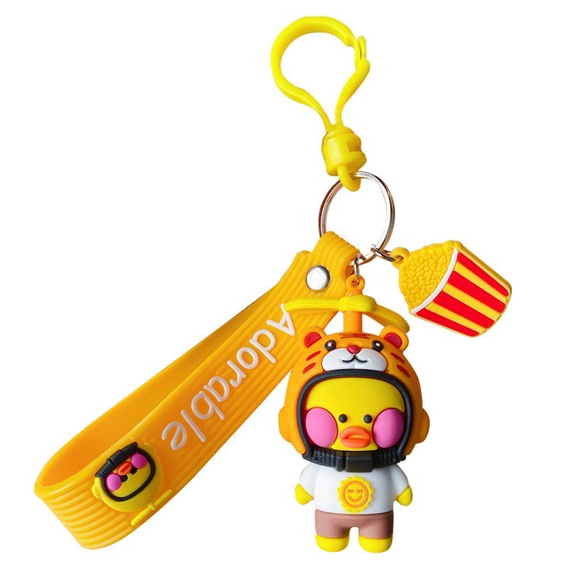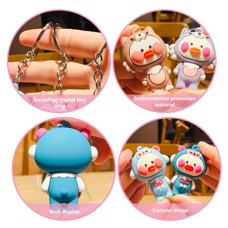 Coreano Lalafanfan Anatra Portachiavi con Animali Casco Piccolo Giallo Anatra Figura Portachiavi Decor Carino Anatre Giocattoli Bambola Regali per i bambini