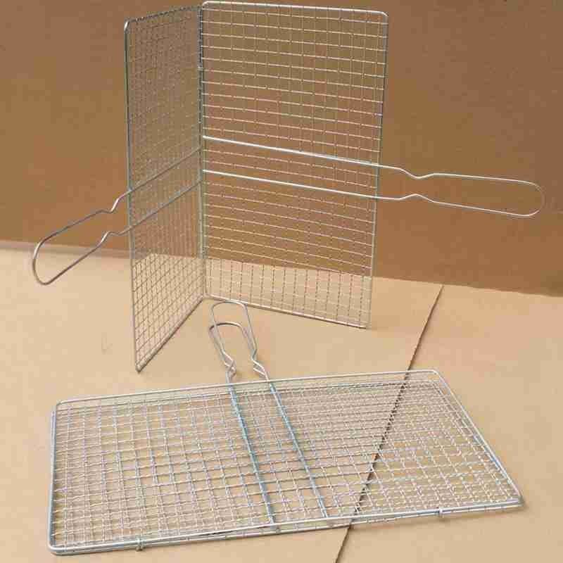 Cestello Per Griglia A Triplo Pesce Antiaderente Manico In Metallo Bbq Bbq Fish Rack Griglia Per Pesci Griglia Barbecue Accessori Per Attrezzi Da Esterno
