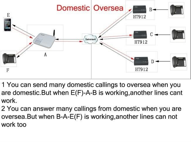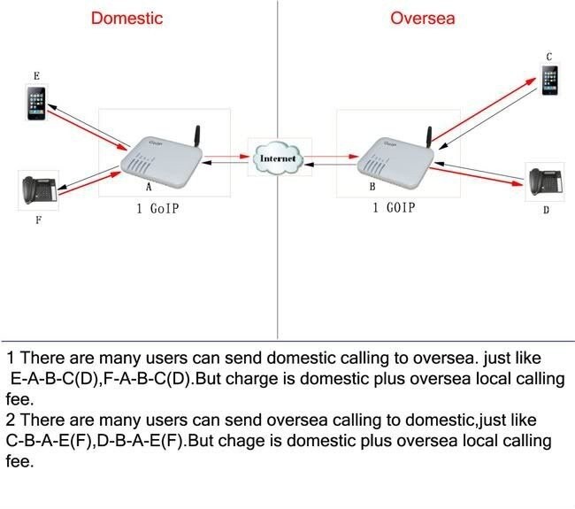 Telefono è un telefono comune. Softswitchis software installato in un computer. Esso si presenta come un server, Goip appare come cliente. Il regime ha bisogno di GoIP, telefono, softswitch, un altro telefono login softswitch attraverso comune dispositivo Gateway. Allora si può PSTN->VOIP e VOIP->PSTN