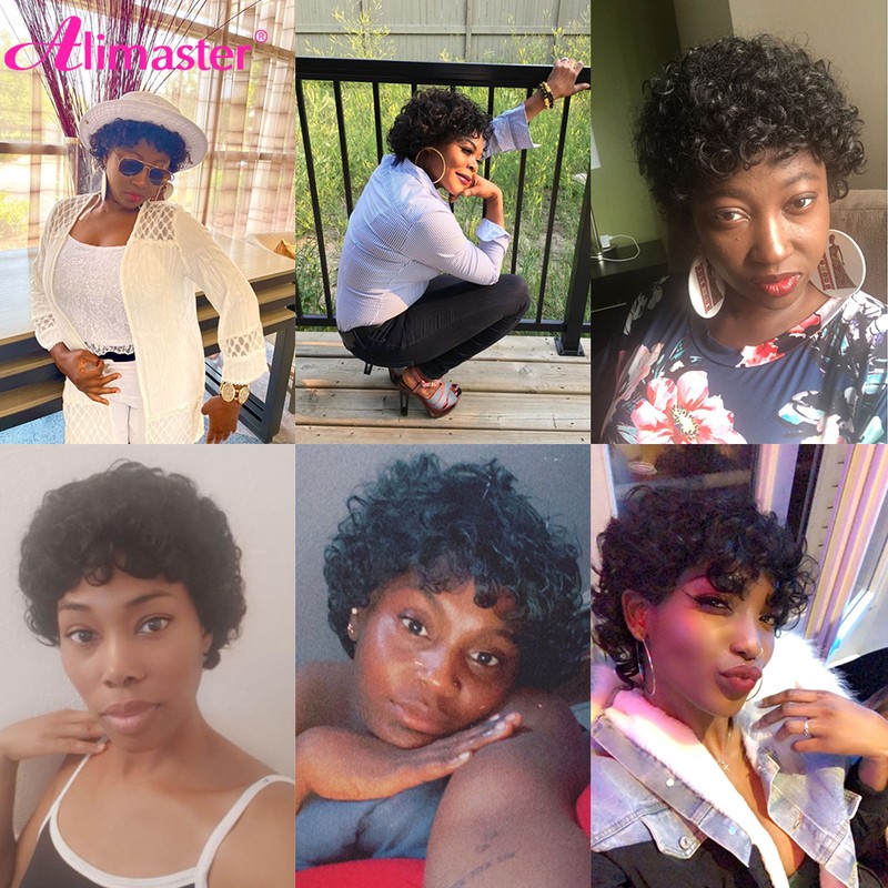 Pixie Cut Parrucca Dei Capelli Umani Corti Ricci Parrucche Dei Capelli Umani Per Le Donne Nere Dei Capelli Umani A Buon Mercato Parrucca Piena Macchina Glueless afro Parrucca Riccia