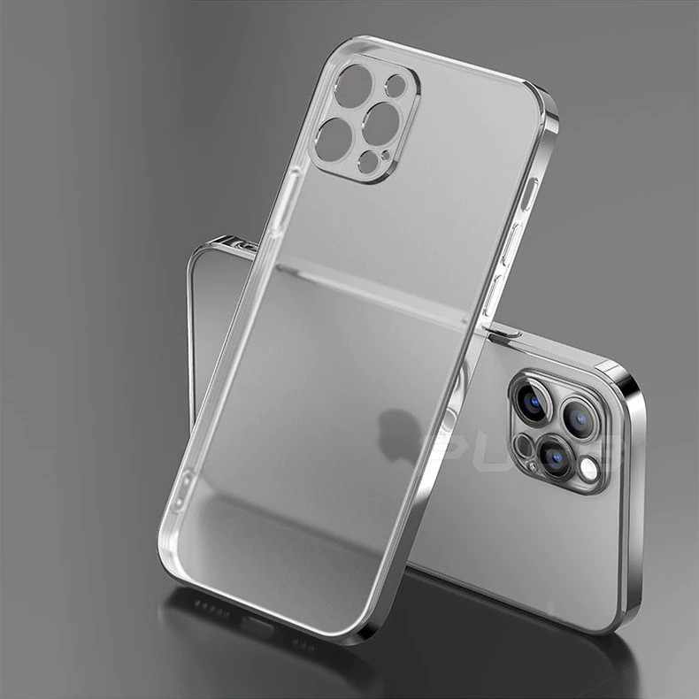 Di lusso di Placcatura Cornice di Piazza Opaca Molle della Cassa Del Silicone per il iPhone 11 12 13 Pro Max Mini XR X XS 7 8 più SE 2020 Antiurto Coperchio Trasparente
