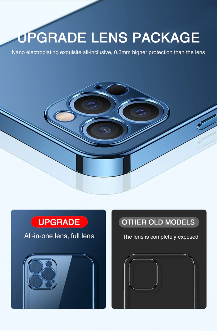 Custodia Trasparente In Silicone Con Cornice Quadrata Placcata Di Lusso Per Iphone 11 12 13 Pro Max Mini X Xr 7 8 Plus Se Più recente Cover Posteriore Trasparente